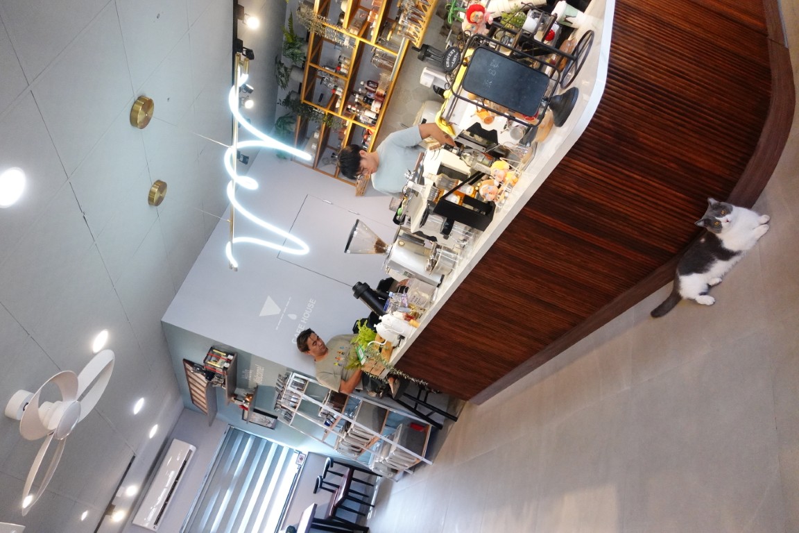 在云頂寬敞通透的空間中,視野開放的玻璃窗外有街景也有田野風光,適合遠望發呆或放空;一整面的潮流公仔展示牆有助於喚醒童心、讓情緒飛揚;有昔日宜蘭店面的大長桌和整排咖啡豆槽,令熟客懷想過往,還有3隻自在穿梭的店貓擼吸不拒,只要能讓訪客在這裡鬆弛片刻、慵懶一下就很好。