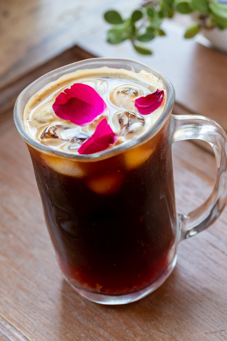 近幾年,Joanna也慢慢在單一產區之外另闢蹊徑,玩起了風味混搭的調飲。例如自己種植有機玫瑰花,做成玫瑰醬或蒸餾出純露後融入咖啡飲品;以在地生產的傳統花生冰取代香草冰淇淋,讓義大利經典甜品Affogato(阿法奇朵)染上地方色彩。