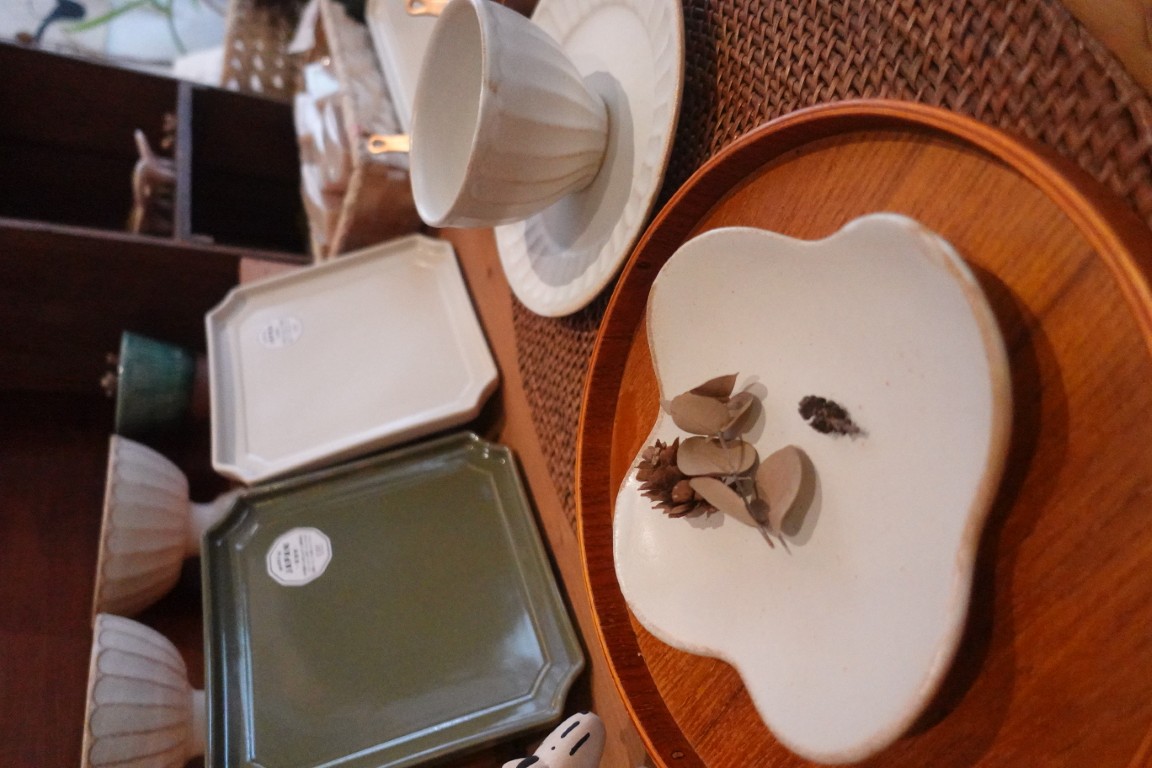 主理人小西初入社會時在國中任教,但因發現自己不適合教職,於是在6年後轉換跑道,與友人合夥做起了花藝設計,並在店裡銷售日式雜貨。為了找到心儀的物件,小西經常往日本跑,這也滿足了她熱愛旅行的本心。